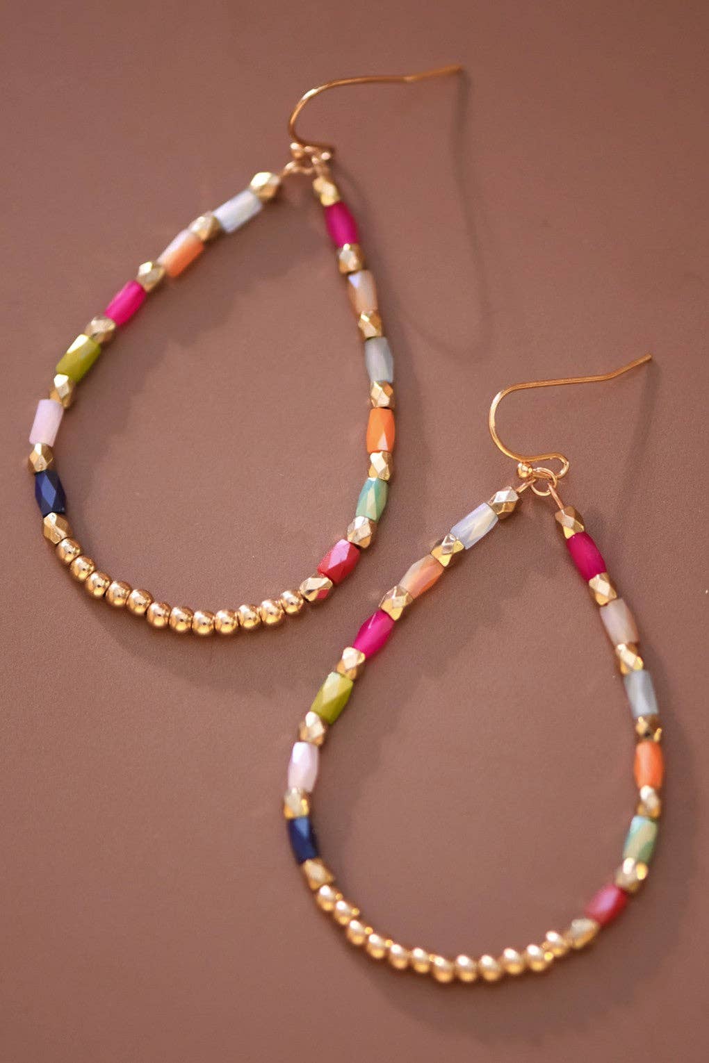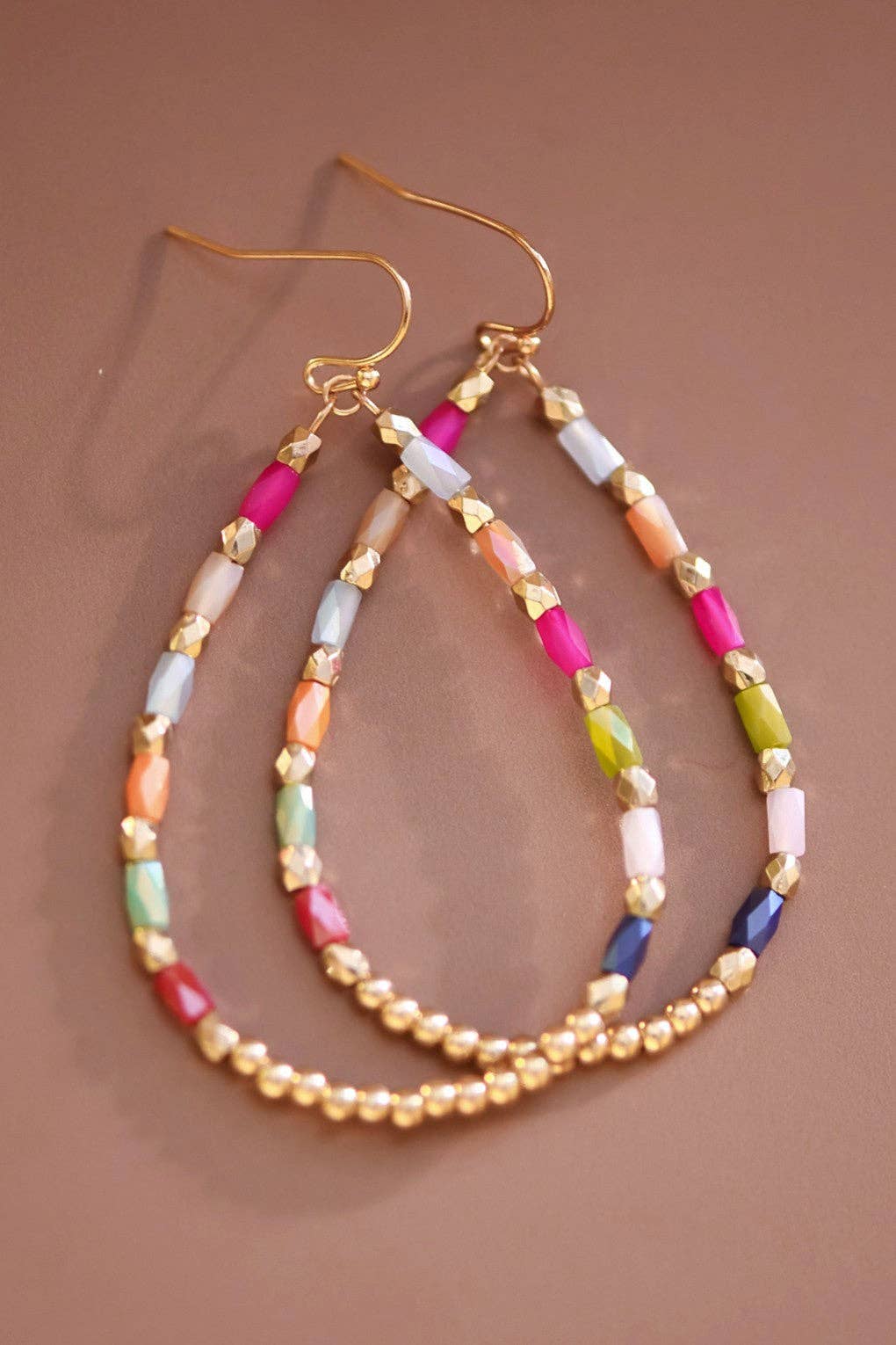 Teardrop Wire Beaded Glass Crystal Earrings. Approx. 1.5"x2.7" Colorful Glass Crystal Earrings | Teardrop Dangle Earrings | Wire Beaded Earrings | Multicolored Beaded Wire Wrapped Earrings | Beaded Crystal Teardrop Earrings | Teardrop Wire Beaded Earrings